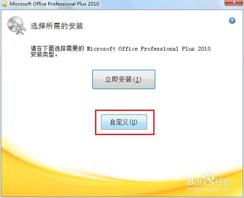 3、在選擇所需的安裝界面,可以選擇立即安裝,也可以選擇自定義,自定義的好處是可以去掉我們不需要安裝的軟件,并自己選擇軟件安裝位置,我們以自定義為例;