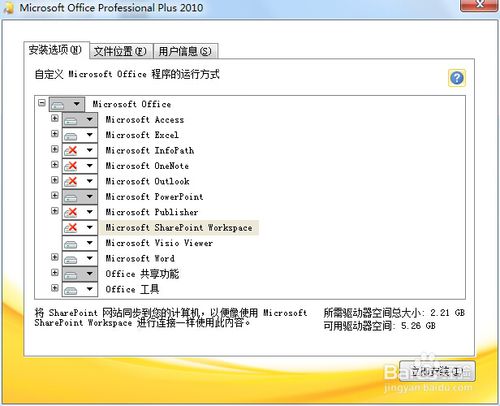 4、選擇自定義后,會進入安裝選項界面,我們可以將不需要的軟件項目去掉,只保留我們要用的軟件;