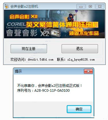 6、運(yùn)行注冊(cè)機(jī),點(diǎn)擊注冊(cè),會(huì)彈出會(huì)聲會(huì)影x2已經(jīng)成為正式版