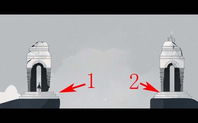 在第二章的黑白區(qū)域,你需要爬到三個脆弱的雕像上面并砸毀它們。