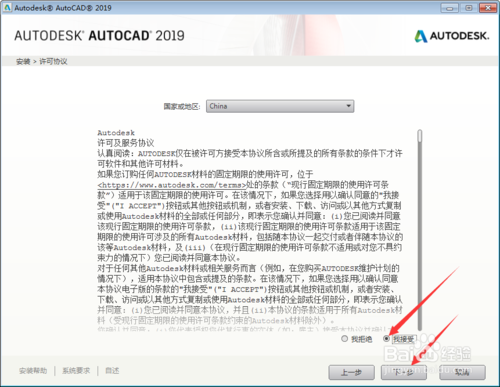 勾選我接受許可協(xié)議并點(diǎn)擊下一步,如圖所示。
