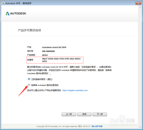 下圖中選擇我具有激活碼并復(fù)制申請(qǐng)?zhí)枺鐖D所示。