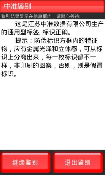 本手機鑒別軟件可以幫助用戶對中準(zhǔn)防偽產(chǎn)品進(jìn)行快速準(zhǔn)確識別。