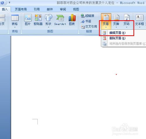 4、選擇菜單欄的插入,選擇頁眉,在選擇編輯頁眉