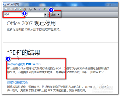 在搜索結果中選擇“轉換或保存為PDF或XPS”。