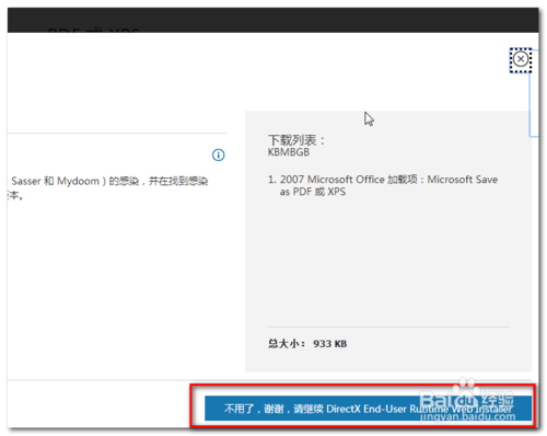 5、不要理會其它的,點擊“不用了,謝謝,請繼續(xù)……”[如圖示]