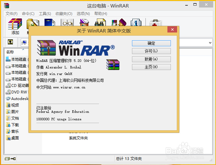 打開winrar軟件,選擇“幫助—>關(guān)于winrar”看到顯示已注冊(cè)說明已經(jīng)激活了