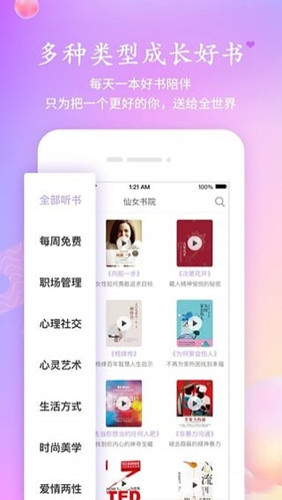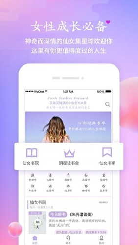 仙女集app是一個(gè)專注于年輕女性時(shí)尚成長(zhǎng)與教育的新媒體平臺(tái),致力于成為廣大年輕女性的時(shí)尚成長(zhǎng)社群,旗下仙女書院是具備優(yōu)質(zhì)女性中文聽書的品牌。仙女集app的愿景是成為中國(guó)一億小仙女大本營(yíng),陪伴一億年輕菁英女性成長(zhǎng),做年輕女性勇氣、智慧與美麗的加油站。