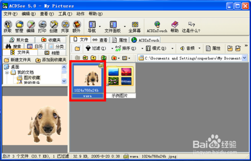 1、打開ACDSee找到你要修改大小的圖片,并選中