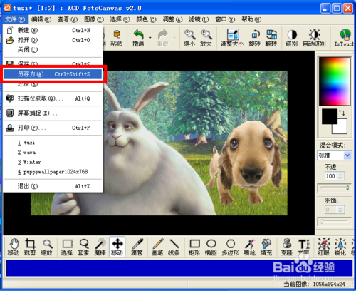8、最后鼠標(biāo)點選其他地方就會確認(rèn),然后選擇“文件”--“另存為”保存合成的圖片,這樣摳圖合成工作就完成了。