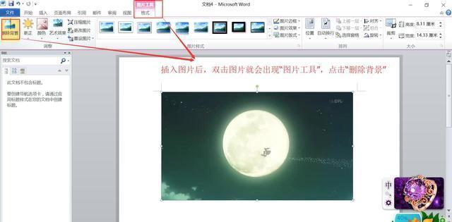 操作方法:首先,我們插入圖片后,雙擊圖片就會(huì)出現(xiàn)“圖片工具”,點(diǎn)擊“刪除背景”,然后拖動(dòng)線框選擇要保留的區(qū)域,再點(diǎn)擊“標(biāo)記要保留的區(qū)域”按鈕,最后點(diǎn)擊“保留更改”即可,下面就來(lái)看看具體操作吧:
