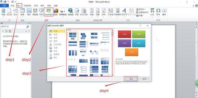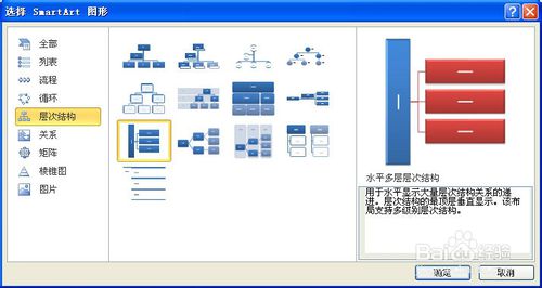 【SmartArt】命令,點(diǎn)擊【SmartArt】命令,打開(kāi)【SmartArt】命令圖集,可以看到【SmartArt】命令圖集的分類(lèi),【列表】、【流程】、【循環(huán)】、【層次結(jié)構(gòu)】、【關(guān)系】、【矩陣】、【棱錐圖】、【圖片】,利用SmartArt形狀圖可以更加直觀的方式交流信息。點(diǎn)擊【SmartArt】命令打開(kāi)【SmartArt】命令集,選擇要插入SmartArt圖表,點(diǎn)擊【確定】。系統(tǒng)自動(dòng)打開(kāi)設(shè)計(jì)窗,可以插入的SmartArt圖。