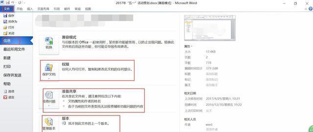 Office 2007左上角的圓形按扭及其下的菜單讓人印象深刻,到了Office 2010里功能更豐富了,特別是文檔操作方面,比如在文檔中插入元數(shù)據(jù)、快速訪問(wèn)權(quán)限、保存文檔到SharePoint位置等等。