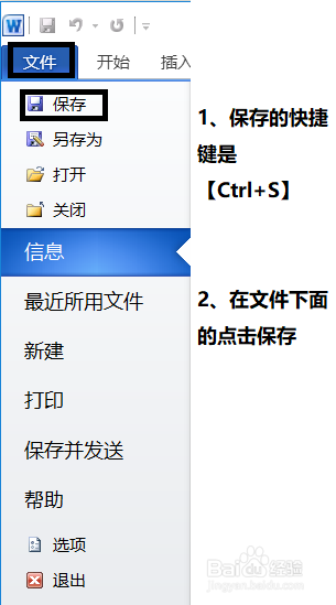 快捷鍵的記憶,長(zhǎng)時(shí)間之后就會(huì)忘記,但是wrod 2010中,還有一種方法可以實(shí)現(xiàn)快速操作,例如保存的快捷鍵是【Ctrl+S】,實(shí)際用鼠標(biāo)點(diǎn)擊的話在文件下方選擇“保存”操作圖片如下