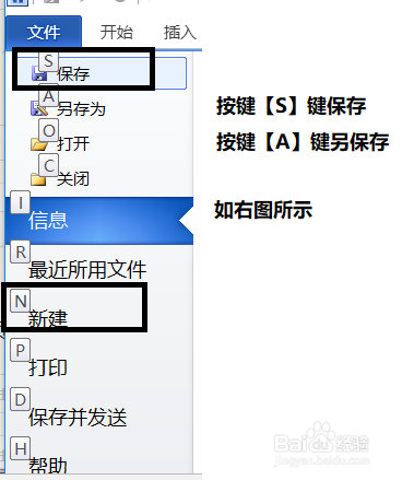 另一種方法可以實(shí)現(xiàn)快速操作,依次按下【Alt】鍵→【F】(選擇文件)鍵→【S】(選擇保存)即可字母F和S在選項(xiàng)卡和組內(nèi)命令,所以需要記憶,用法和盲打字一樣,所以不用記憶。操作圖片如下