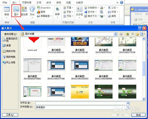 【圖片】命令,用于插入電腦中的圖片,點(diǎn)擊【畫(huà)片】命令,打開(kāi)電腦圖片收藏夾,選擇圖片,點(diǎn)擊【確定】,就可以插入自己選定的圖片。