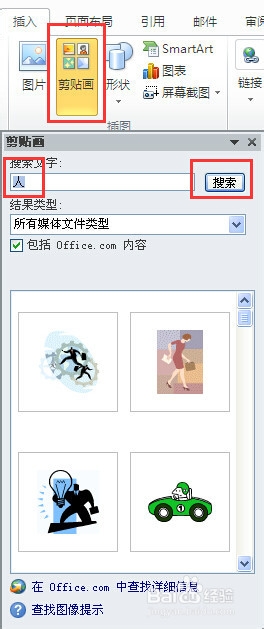 【剪貼畫(huà)】命令,用于插入Office Word2010系統(tǒng)中自帶的圖畫(huà)。點(diǎn)擊【剪貼畫(huà)】命令,打開(kāi)剪貼畫(huà)搜索框,輸入要搜索的圖畫(huà)類(lèi)型,點(diǎn)擊搜索,在剪貼畫(huà)集中可以看到和搜索項(xiàng)有關(guān)的各類(lèi)剪貼畫(huà)。選擇要插入的剪貼畫(huà),點(diǎn)擊剪貼畫(huà),剪貼畫(huà)就會(huì)自動(dòng)插入到文檔中。