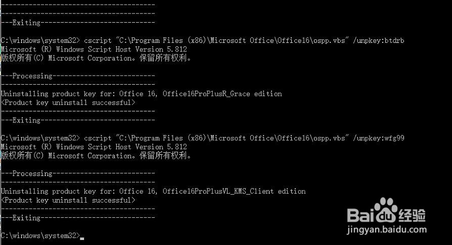 cscript ospp.vbs /unpkey:*****(key的后面五位)