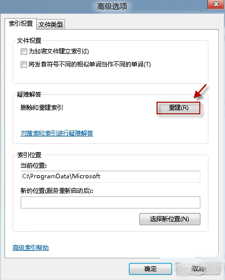 4、如果沒有,我們可以重建索引選項。單擊“高級”,在“索引設(shè)置”中按“重建”按鈕。