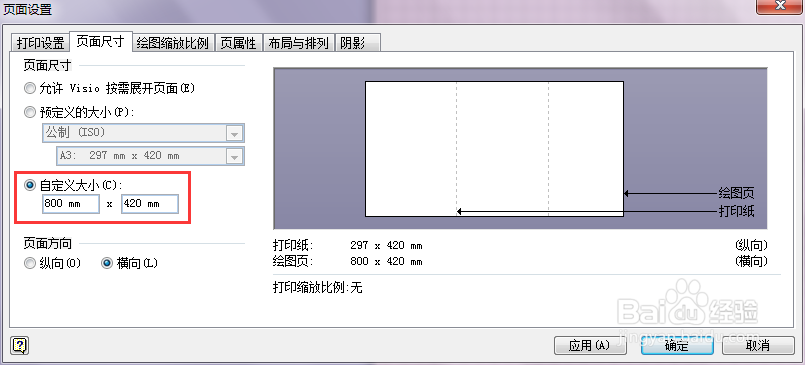 在頁面設(shè)置窗口的【頁面尺寸】選項下選擇【自定義大小】,輸入合適的尺寸,點擊確定,繪圖區(qū)域尺寸大小設(shè)置就完成了。