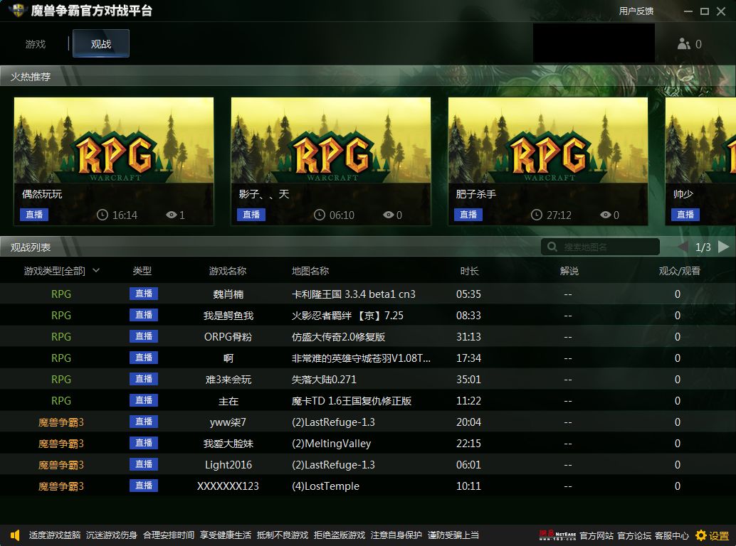 測試階段將開放哪些模式?目前主要測試魔獸爭霸對(duì)戰(zhàn),包括1V1,2V2,3V3的快速匹配,Dota及RPG功能將在近期推出。