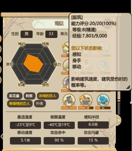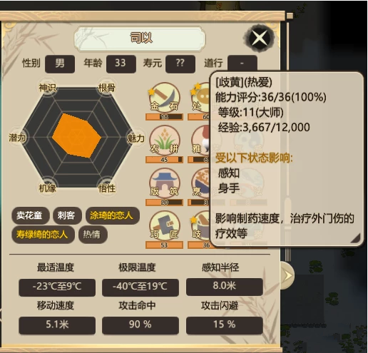 鐵匠、衣匠、巧匠:雖然這三項工作對應(yīng)的產(chǎn)出物品不同,但是這三項工作都會受到人物面板“巧匠”能力的影響,而產(chǎn)出物品的品質(zhì)則受到人物面板“雅藝”能力的影響。因此,在制作物品時,需要安排對應(yīng)能力較高的外門弟子來執(zhí)行。