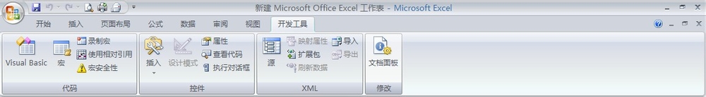 “開發(fā)工具”工具欄:將光標(biāo)移動(dòng)到“開發(fā)工具”的位置,右擊鼠標(biāo),我們就能看到“代碼”、“控件”、“XML”、“修改”。