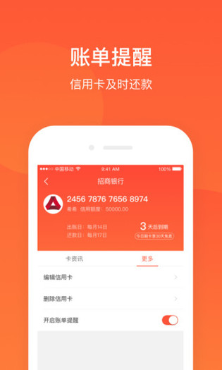 1、拿起手機(jī)就能隨時(shí)隨地查詢信用卡,賬單一目了然;
