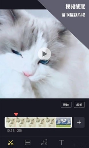 1.視頻裁剪、視頻拼接、視頻字幕,多種視頻制作功能滿足你的視頻剪輯要求2.轉(zhuǎn)場(chǎng)、分割、快放、慢放、貼圖、音樂(lè)剪輯,多種剪輯效果為你的視頻增光添彩