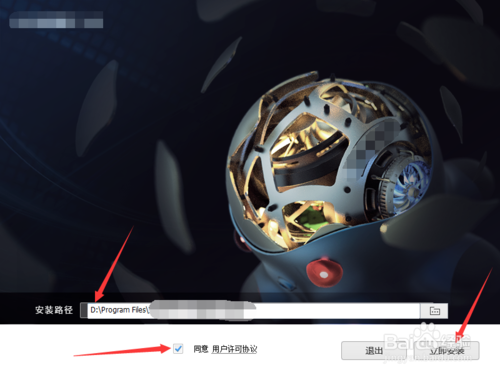 點一下安裝路徑變?yōu)榭删庉嫚顟B(tài),將首字母C改為D,然后勾選我同意用戶許可協(xié)議并點擊立即安裝。