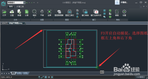 選擇窗口后自動返回到圖紙頁面,F(xiàn)3開啟自動捕捉模式,選擇圖紙圖框的左上角和右下角即可,選擇完成后自動返回到打印窗口。