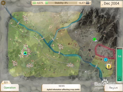 1、屏幕右下角的Reputation相當(dāng)于你的血量,降到0就輸了,叛軍的活動、腐敗太高、事件選項、外國頻繁駐軍等因素都會導(dǎo)致它下降,但增加的方式卻極其有限,目前看來主要就三種方式增加,一是每穩(wěn)定一個地區(qū)會增加幾點,二是一些升級選項能夠讓Reputation立刻增加,比如banker(手機大媽)就有一個升級項能夠立刻增加7點,三是一些事件選項,比如在和叛軍談判過程中采取強硬立場,逮捕貪污犯等能夠增加Reputation,總之提高的方式極為有限,游戲過程中請控制好你的Reputation2、與叛軍和談目前看來是一個很快速的通關(guān)方式,一旦和談成功會換來好幾年的和平期,足夠你去穩(wěn)定所有地區(qū),但要注意的是即便你在和談過程中再怎么采取強硬立場,最終如果你接受和談條件都會大幅降低你的Reputation(可能會高達(dá)20多點),所以請預(yù)留好你的Reputation。