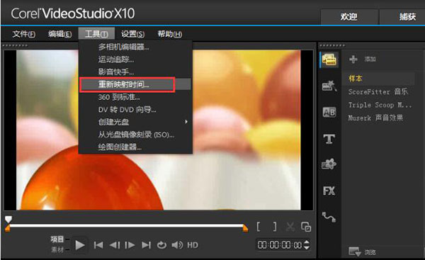 2、單擊菜單欄上的“工具”,在下拉菜單中選擇“重新映射時(shí)間選項(xiàng)”,打開重新映射時(shí)間對(duì)話框;