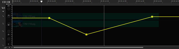 另外我們還可以在軌道透明度中添加關(guān)鍵幀,然后設(shè)置每一段不同的透明度,也就是說(shuō)可以讓視頻中的某一段變透明,其他不透明,或者說(shuō)每一段和每一段透明度不同。這些都可以隨心設(shè)置。