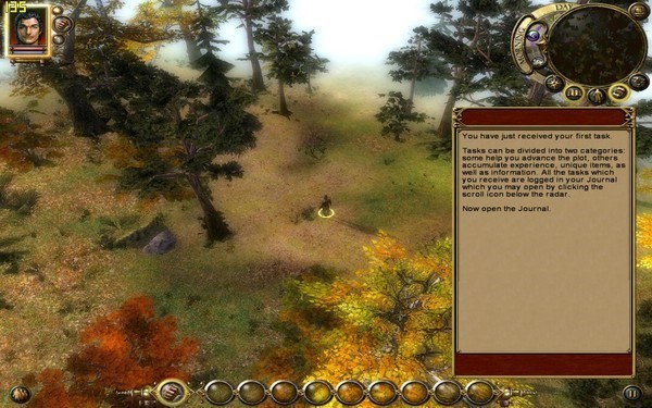 1.一大段對(duì)話和幾個(gè)選擇后,沿路走向小地圖上的藍(lán)點(diǎn),在清理幾頭野豬后,到達(dá)黃色箭頭處觸發(fā)劇情選項(xiàng)(當(dāng)然是不付錢也不拋棄女角色啦),然后自動(dòng)暫停,準(zhǔn)備下戰(zhàn)斗,很簡(jiǎn)單的放倒4個(gè)小兵,離開(kāi)Lake進(jìn)入下一張地圖