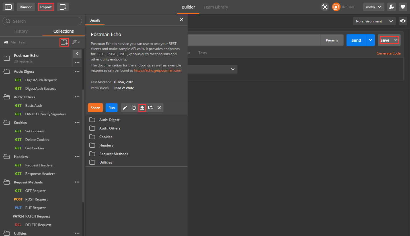 通過collection的歸類,我們可以良好的分類測試軟件所提供的API.而且Collection還可以Import或是Share出來,讓團(tuán)隊里面的所有人共享你建立起來的Collection。