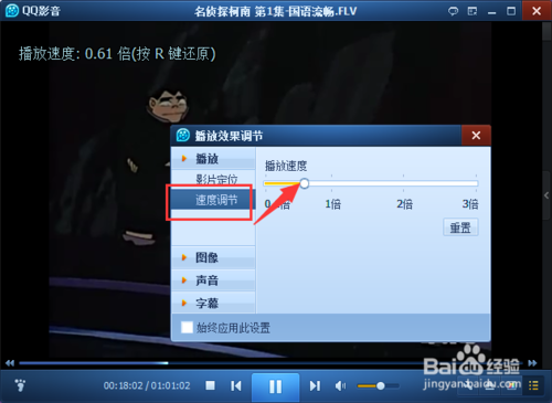 QQ影音如何加速播放方法在播放視頻后,鼠標(biāo)點擊右鍵,選擇播放效果調(diào)節(jié)選項