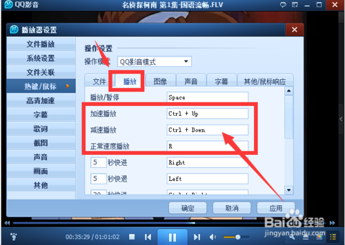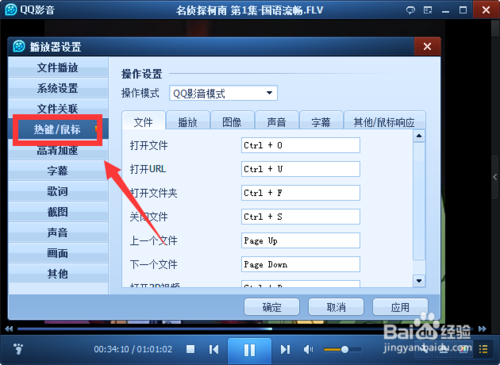 打開播放器設(shè)置中的熱鍵/鼠標(biāo)欄位置,