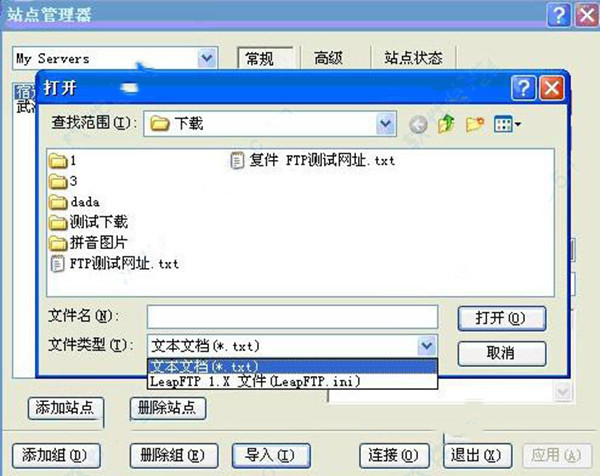 站點導(dǎo)入就是將之前版本的站點信息或其它FTP軟件的站點信息導(dǎo)入進(jìn)來,而不需要再進(jìn)行重復(fù)的設(shè)置。最新的LeapFtp2.7.6共支持自身的四種格式文件的導(dǎo)入,同時也支持導(dǎo)出成四種文件格式,這給廣大的用戶節(jié)省了時間,也減少了麻煩。通過菜單【站點】—>【站點管理器】或F4鍵點擊“導(dǎo)入”按鈕我們就可以進(jìn)行站點導(dǎo)入及導(dǎo)出。