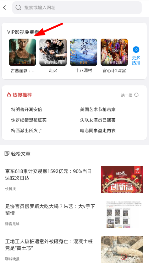 之后我們需要在其中搜索找到自己感興趣的電影,或者通過(guò)“VIP影視免費(fèi)看”功能點(diǎn)擊進(jìn)入電影的播放頁(yè)面。