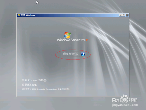 2、現(xiàn)在正式安裝Windows Server 2008 R2 x64企業(yè)版,點擊"現(xiàn)在安裝"向右箭頭。界面左下角可選擇"安裝Windows須知"、"修復計算機"并顯示版權信息。