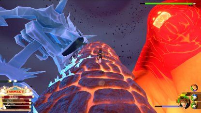 必須登上畫面中央的巖石塔才能攻擊泰坦族,先邊閃避攻擊邊快速登上巖石塔吧。登上塔后,就可以像普通BOSS戰(zhàn)時一樣,使用普通攻擊和魔法來戰(zhàn)斗了。