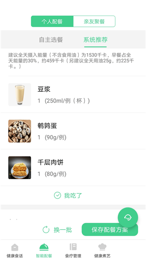 計(jì)膳器你的飲食健康管理專家。告訴你每天應(yīng)該吃什么,吃多少,根據(jù)你的身體狀況智能配餐,精細(xì)化管理你的日常飲食,讓你的健康隨時(shí)看得見(jiàn)。