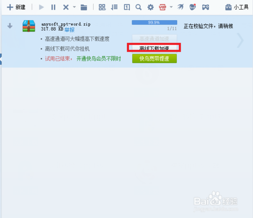 在下載文件時啟用 離線下載加速 功能,否則離線下載將不能使用