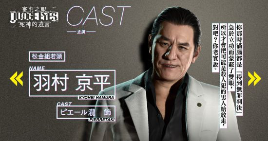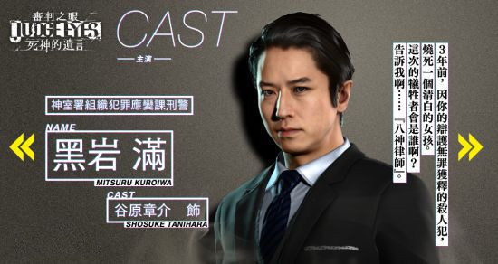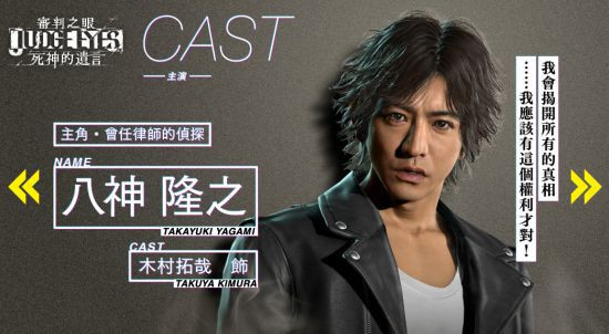《審判之眼:死神的遺言》是一款以現(xiàn)代東京為舞臺的法庭劇動作游戲,玩家須抽絲剝繭追查連續(xù)殘酷命案之謎。知名演員/藝人木村拓哉擔綱主演是曾經跌入人生谷底,卻仍堅強重新站起來的主角「八神隆之」。