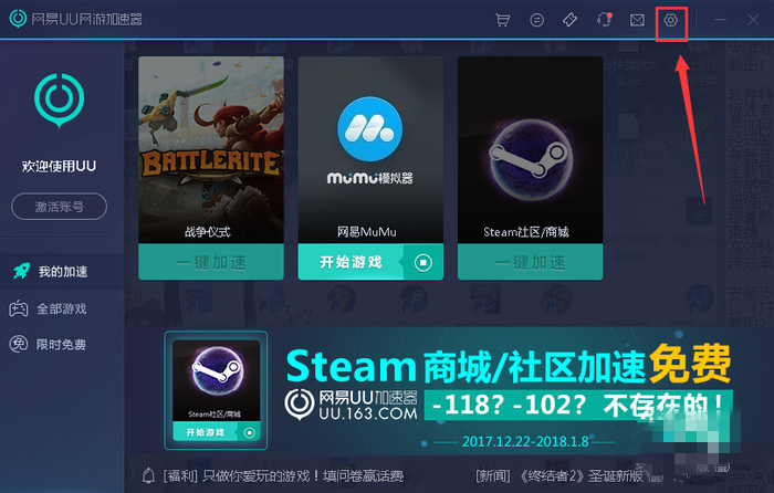 如何取消網(wǎng)易UU網(wǎng)游加速器開機自啟?1、打開網(wǎng)易UU網(wǎng)游加速器,點擊設(shè)置按鈕