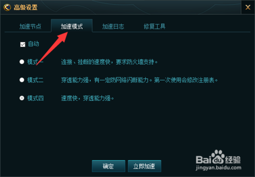 同理,點(diǎn)擊模式,彈出模式選擇界面,可以手動(dòng)選擇加速模式。