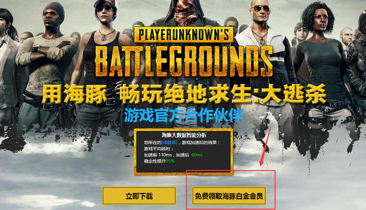 溫馨提示:新用戶若是想體驗白金會員,可以從海豚官網(wǎng)專題頁部分進入到任意一個游戲?qū)n}頁,然后點擊 免費領(lǐng)取海豚白金會員,按照領(lǐng)取說明即可體驗海豚白金加速效果。