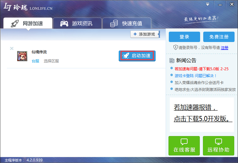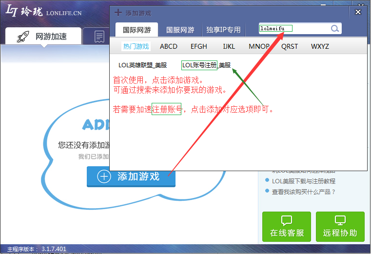 在充值成功之后,即可完成賬號激活,通過添加游戲之后,對游戲進行加速。