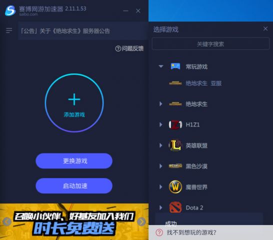 賽博加速器專注于游戲加速,為廣大玩家提供穩(wěn)定快速的游戲環(huán)境,有效防止高延遲、易掉線、登錄難等游戲常見問題,讓玩家登陸游戲更順暢。吃雞中的亞服、日韓服、東南亞等都可以流暢運(yùn)行,大吉大利,晚上吃雞。
